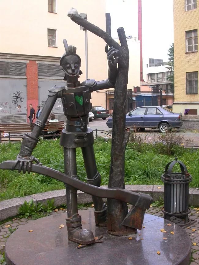 В одном из дворов Петербурга расположились герои любимой сказки. Персонажи «Волшебника Изумрудного города». Знаменательно, что и сам Петербург, как и Изумрудный город является городом мечты, сбывающихся надежд, мудрости, смелости, добрых сердец его жителей, в том числе и Страшилы, и Льва, и Железного дровосек, навсегда поселившихся здесь.